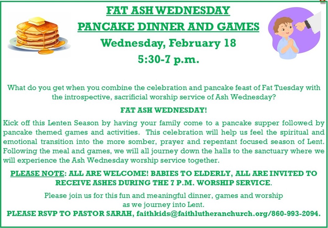 Fat Ash Wednesday Pancake Dinner & Games!